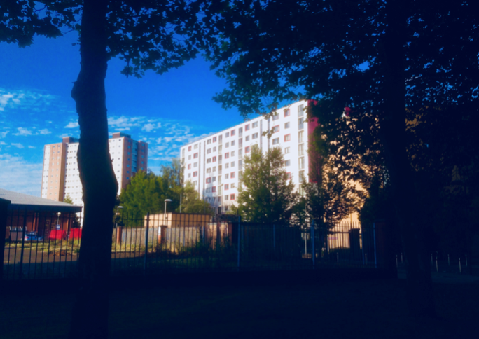 Edwin Hugh Shellard’s gothic-style church was built in 1856 but looks and feels much older. It’s truly glorious and complete with a quadrant garden of landscaped trees and colourful flower beds. It’s like stumbling into Corpus Christi college down Merton street in Oxford. Weirdly it sits deep in the heart of the poorest sink estate in town, surrounded on all sides by towering slum highrises in a pedestrianised crime hot zone called the Broadwalk. The weed and crack dens of Mulberry, Magnolia and Sycamore (all the highrise blocks have soft, Utopian escapist names) look down on Mrs Wyatt’s soup kitchen, flooding it with acid techno and Bob Marley beats, twenty-four seven. Mrs Wyatt lives here. Her jumble sales, soup kitchens and crash-English courses for newly arrived Syrians fleeing the war zone are legendary. She runs a hostel from here that offers temporary bed and breakfast to a dozen or so young men and women.
